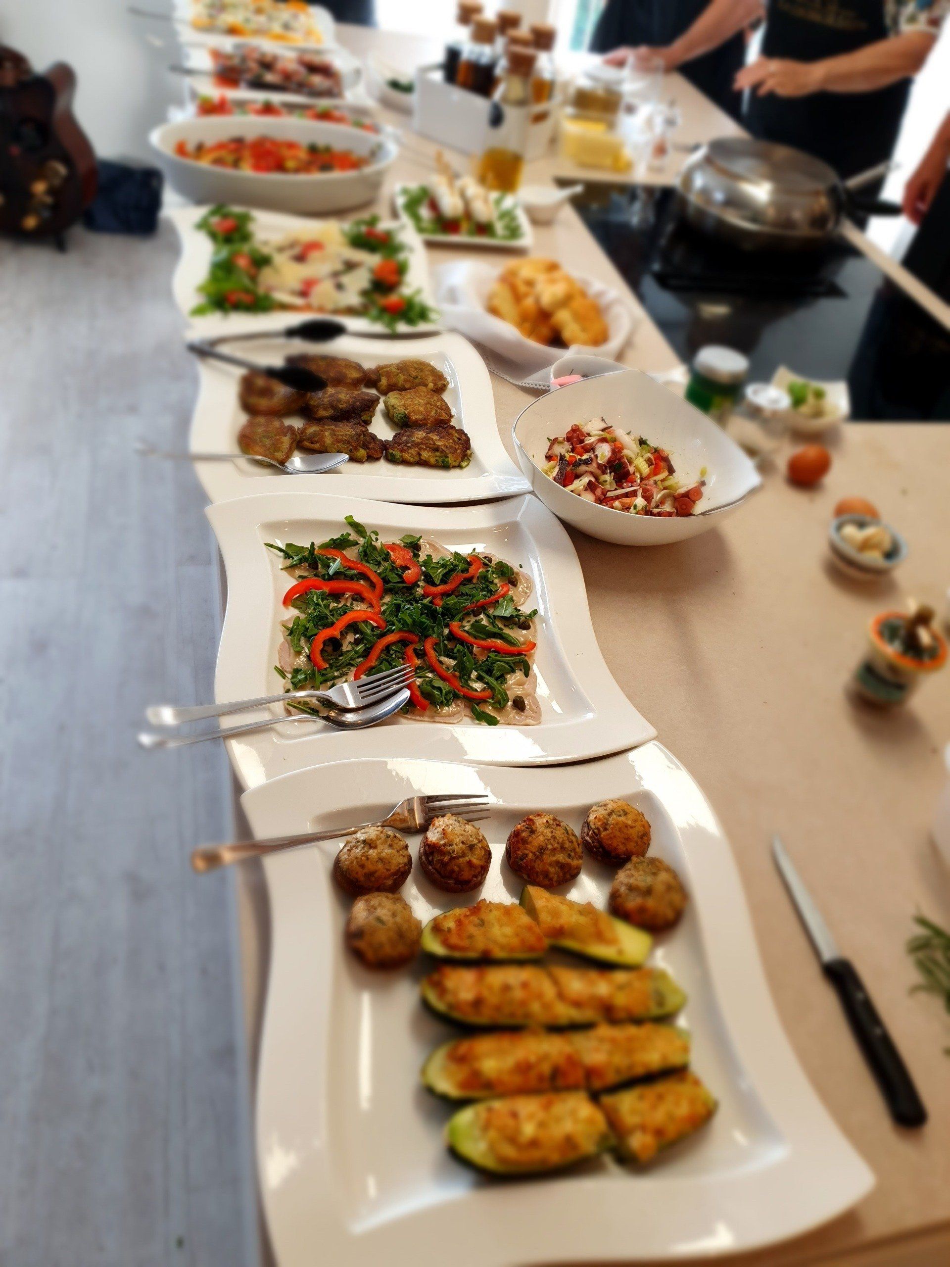 Eines der beliebtesten Speisen der Italiener und perfekt für Ihre Feierlichkeiten zuhause: Antipasto - sie ist kalt und warm zu genießen und sehr vielfältig; ob Vitello Tonnato, Insalata di Mare, Caponata, Carpaccio di Salmone/Vitello, Zucchini ripieni, Peperonata, Parmiggiana, Mozzarella in Carozza, Polpette di Asparagi...